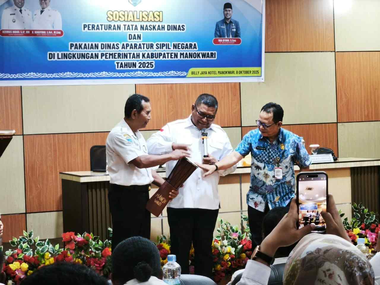 MANOKWARI,Kabarkasuari.Com_ Pemerintah Kabupaten Manokwari, Papua Barat,melalui Bagian Organisasi dan Tata Laksana (Ortal) Setda Manokwari, mengelar sosialisasi Peraturan Tata Naskah Dinas dan Peraturan Pakaian Dinas Aparatur Sipil Negara (ASN), Rabu(8/10/2025).