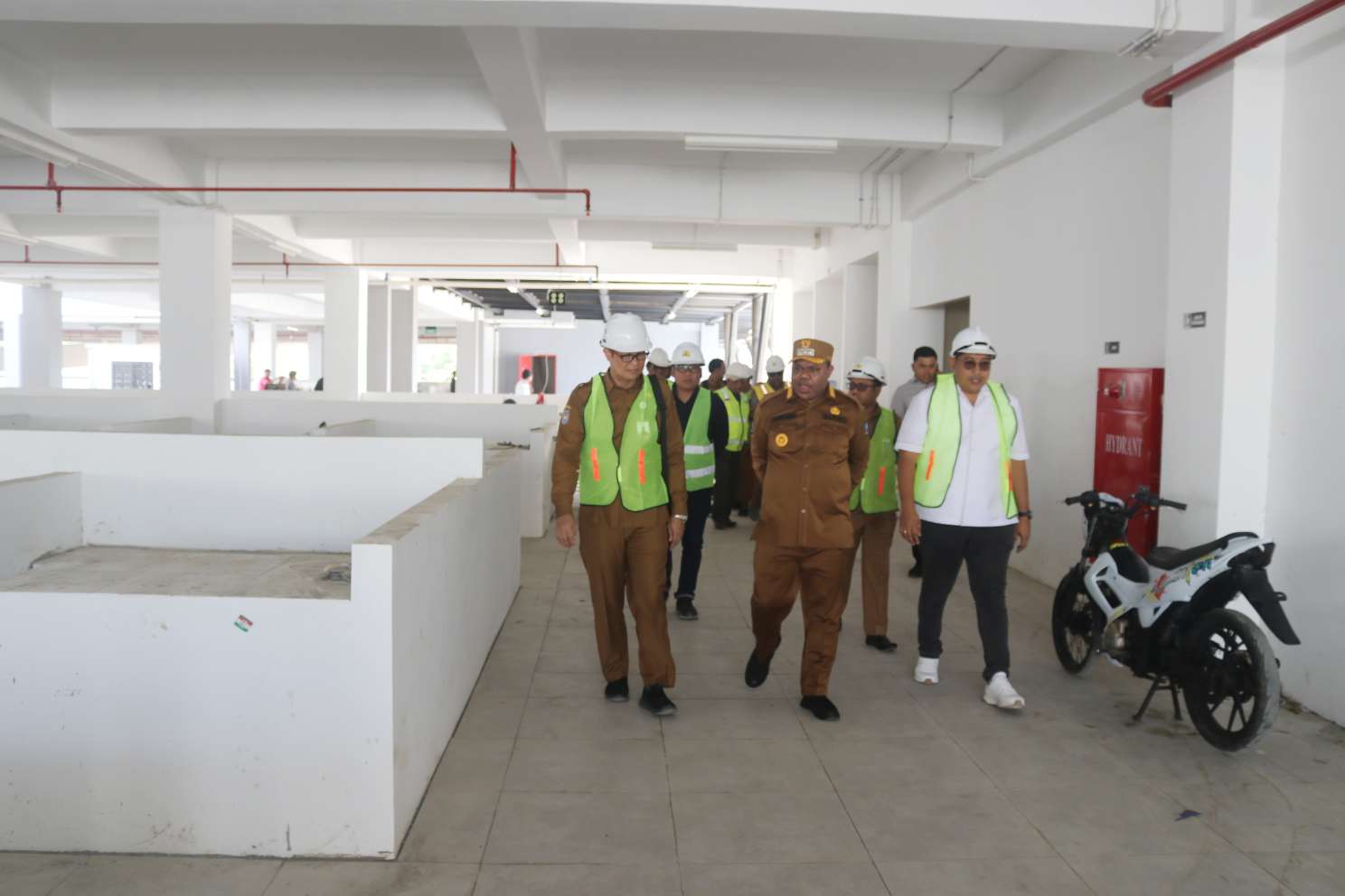 MANOKWARI,Kabarkasuari.com_Progres Pembangunan pasar central Sanggeng dan RTP terus digenjot pengerjaannya. Untuk memastikan pengerjaannya, Bupati Hermus Indou, ada selasa (7/10/202025) turun langsung ke dua proyek megah tersebut.