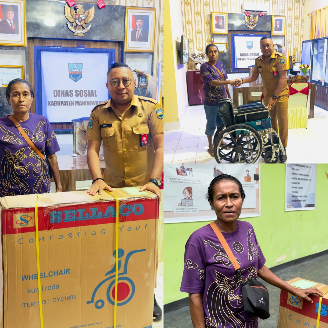“ Pemberian bantuan ini tidak hanya bersifat simbolis, tetapi merupakan wujud nyata dari kehadiran negara melalui Pemerintah Daerah dalam memberikan pelayanan yang humanis dan inklusif kepada masyarakat. Ini juga merupakan rangkaian dari Program 100 Hari Kerja Bupati Manokwari Hermus Indou, S.IP, M.H. dan Wakil Bupati Manokwari H. Mugiyono, S.Hut., M.Ling., di mana kegiatan ini menjadi bentuk perhatian dan komitmen Pemerintah Daerah Kabupaten Manokwari terhadap kelompok rentan, khususnya penyandang disabilitas,” ungkapnya*.