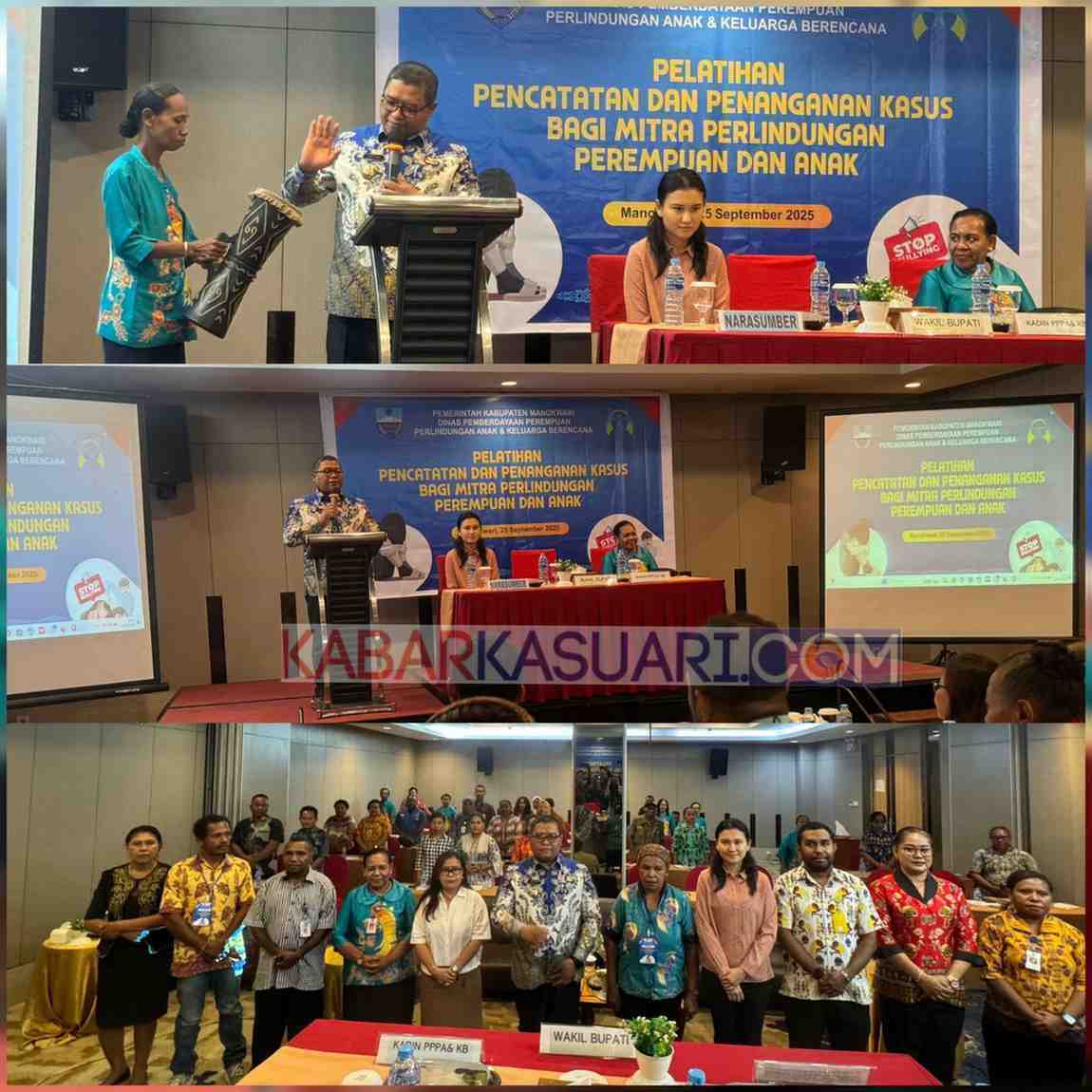 MANOKWARI,kabarkasuari.com_Dinas Pemberdayaan Perempuan Perlindungan anak dan KB kabupaten Manokwari, mengelar Pelatihan Pencatatan dan Penanganan Kasus Bagi Mitra Perlindungan Perempuan dan Anak , Kamis ( 25/9/2025).