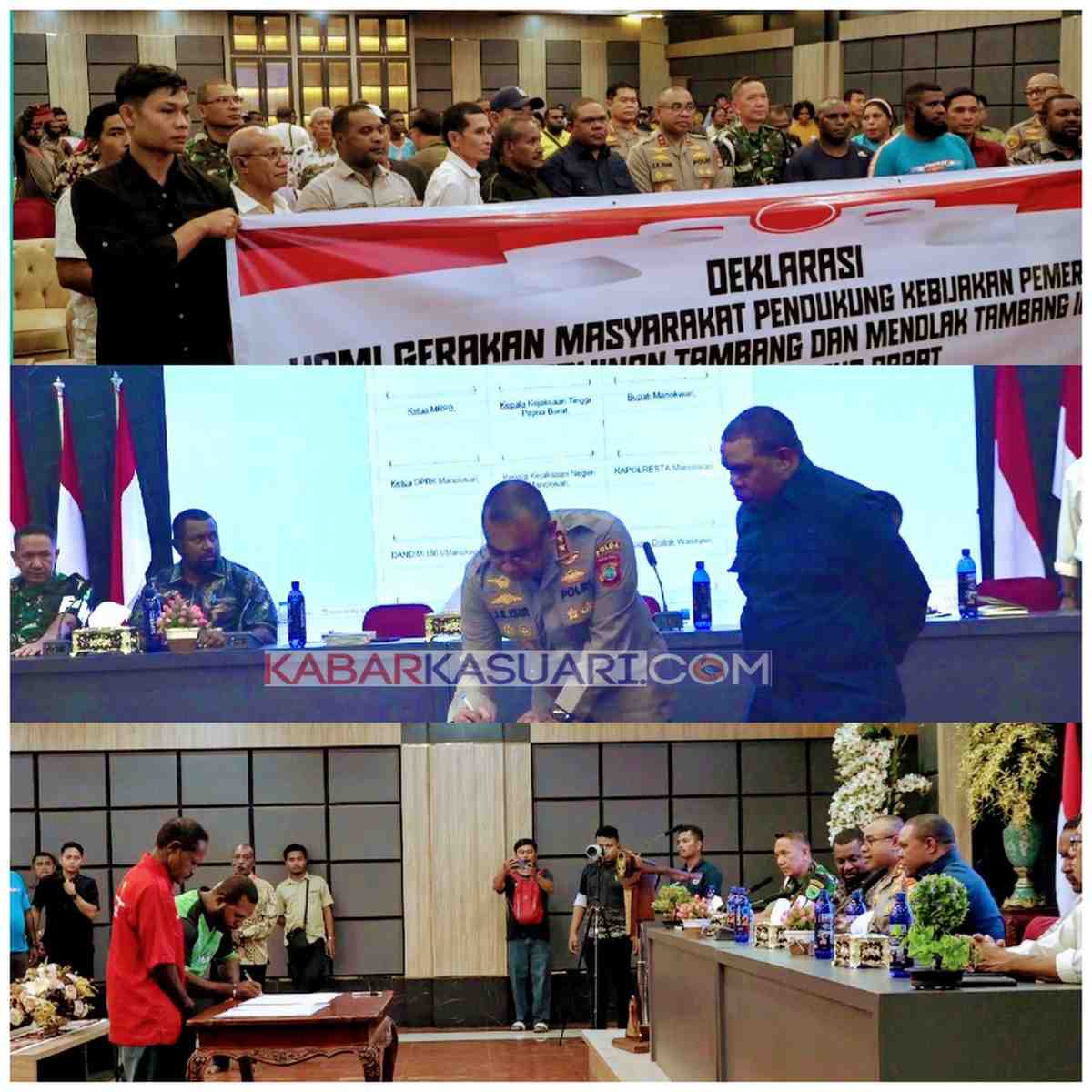 Deklarasi penertiban aktivitas pertambangan tanpa izin di Ditsirk Wasirawi, Kabupaten Manokwari, ditandatangani oleh Pemerintah Provinsi Papua Barat, Pemerintah Kabupaten Manokwari, Kapolda Papua Barat, perwakilan Pangdam XVIII Kasuari , Ketua MRPB, unsur Forkopimda Kabupaten Manokwari, masyarakat pemilik hak ulayat, dan sejumlah pelaku usaha atau pemodal.