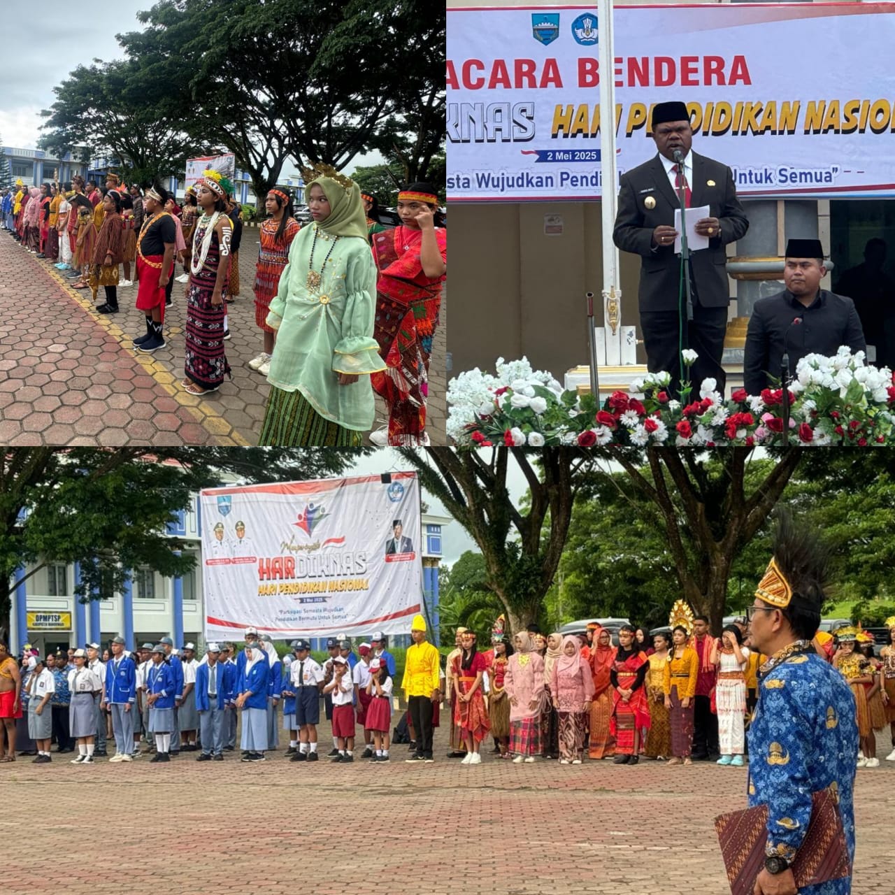 Dengan sorotan tema Partisipasi Semesta Wujudkan Pendidikan bermutu untuk semua, Upacara di ikuti Pelajar SMA, SMP dan SD, serta para Guru dan pegawai di lingkup pemkab manokwari.