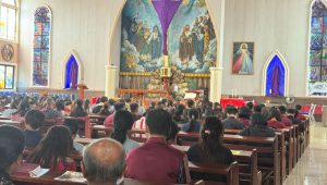 MANOKWARI, KABARKASUARI.COM_Umat Katolik Paroki Imanuel Sanggeng mengikuti ibadat Jumat Agung dengan penuh khidmat melalui prosesi penyembahan salib, sebagai bentuk refleksi atas sengsara dan wafat Yesus Kristus.