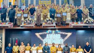 Sebagai bentuk apresiasi, Pemkab Manokwari memberikan penghargaan kepada sejumlah instansi yang dinilai berhasil melaksanakan program imunisasi dengan baik. (Adm)