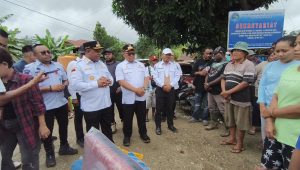Didampingi Sekertaris Daerah dan pimpinan OPD teknis, Bupati dan wakil bupati melihat langsung kondisi warga yang tengah membersihkan rumah mereka dari genangan air dan lumpur.