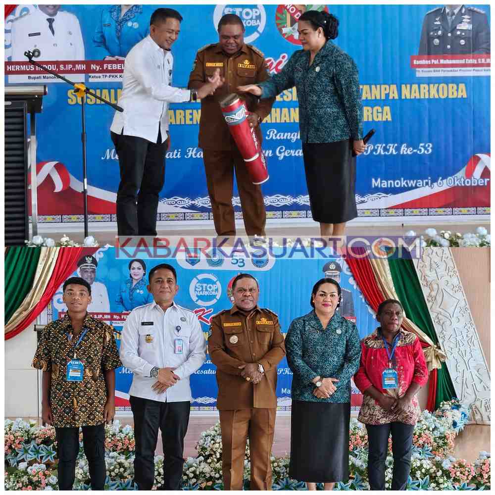MANOKWARI, Kabarkasuari.com_ Memperingati  Hari Kesatuan Gerak (HKG) PKK ke–53 Tahun 2025, Tim Penggerak PKK Kabupaten Manokwari bekerja sama dengan Badan Narkotika Nasional Provinsi Papua Barat (BNNP Papua Barat) menggelar  Sosialisasi Keluarga Indonesia Sehat Tanpa Narkoba (KRISNA) yang dikemas bersama materi Parenting dan Ketahanan Keluarga, bertempat di Auditorium DPD PWKI Manokwari, Senin ( 6 Oktober 2025 )