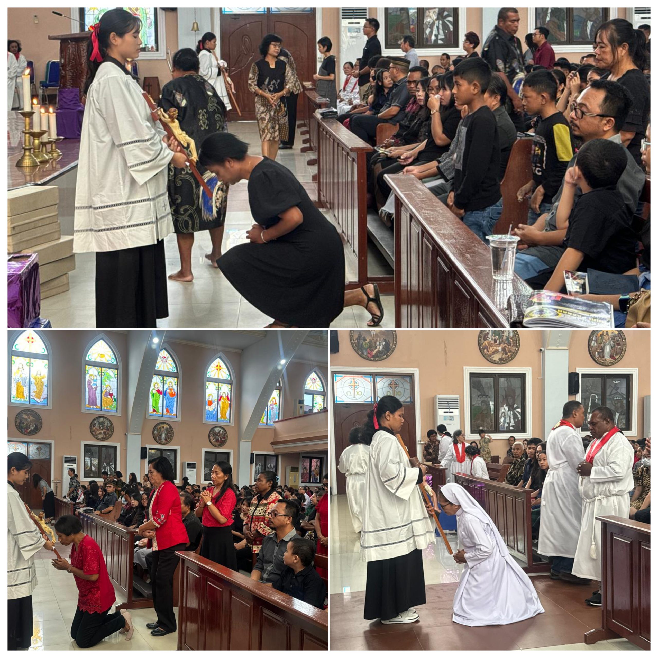 Manokwari, kabarkasuari.com_Memaknai sengsara dan wafat Yesus Kristus yang di imani umat Kristiani di seluruh Bumi pada Jumat Agung, Gereja Katolik Paroki Imanuel Sanggeng Manokwari Juga mengenang nya dengan Penyembahan salib, Jumat ( 18/4/2025)