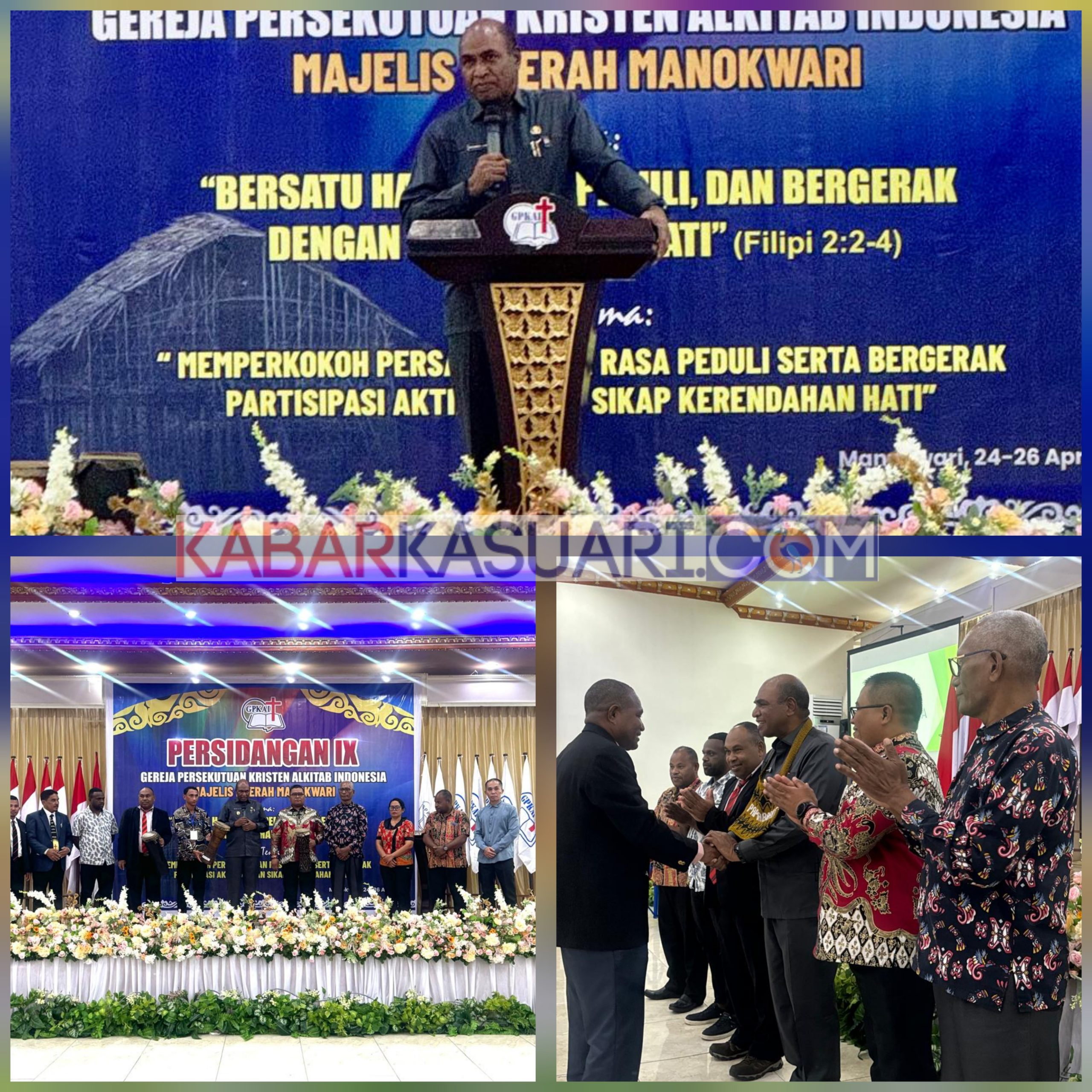 Manokwari, kabarkasuaru.com,_Gereja Persekutuan Kristen Alkitab Indonesia (GPKAI) Majelis Daerah Manokwari, melaksanakan Persidangan ke IX. Pembukaan Persidangan berlangsung di salah satu hotel di Manokwari, di hadiri Wakil Gubernur Papua Barat Mohammad Lakotani  Membuka Persidangan IX GPKAI MD Manokwari, Kamis(24/4/2025)